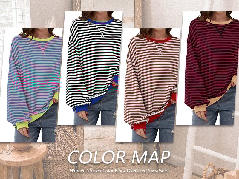 WOMEN'S OVERSIZED STRIPED LONG SLEEVE PULLOVER